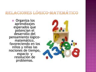 El documento describe los aprendizajes esperados en matemáticas para el cuarto semestre. Cubre temas como relaciones y funciones, números, geometría, medición, y estadística y probabilidad. Se enfoca en desarrollar el pensamiento lógico-matemático en los niños a través de la manipulación de objetos y resolución de problemas.