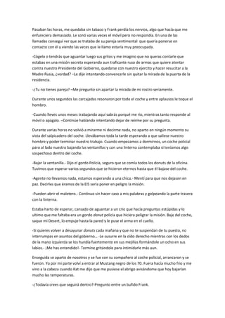 Dos agentes de una unidad de investigación secreta esperan en su coche durante horas para emboscar a un traficante de armas ruso. Cuando finalmente sale, uno de los agentes dispara y mata a otro agente que habían enviado previamente, creyéndolo el objetivo. Al comprobar su identidad, descubren que el agente asesinado había sido torturado. Llaman repetidamente a su central sin obtener respuesta, dejándolos con muchas preguntas sobre lo ocurrido.