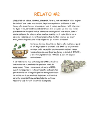 El equipo de Sergio, Valentina, Sebastián, Heidy y Juan Pablo se sintió abrumado por el trabajo después de su lanzamiento. Heidy les recordó que el trabajo valía la pena para recuperar el dinero gastado. Sergio y Sebastián sugirieron pedir un préstamo bancario de $1,000,000 para pagar pedidos atrasados. El banco aprobó el préstamo, permitiendo que el equipo trabajara al 100%. Mientras entregaban pedidos, recibieron el doble de trabajo, por lo que Heidy gestionó fondos de garantía