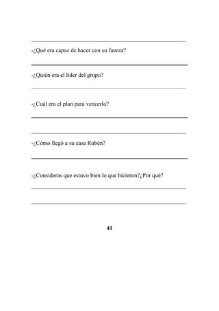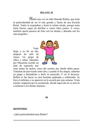 Rubén era el niño más grande y fuerte de la escuela rural, pero abusaba de su fuerza para molestar a los demás. Un grupo de niños liderado por Macarena ideó un plan para emboscar a Rubén y defender a cualquiera que atacara. Llevaron a cabo el plan y Rubén regresó a casa golpeado y avergonzado, dejando de molestar a los demás estudiantes desde entonces.