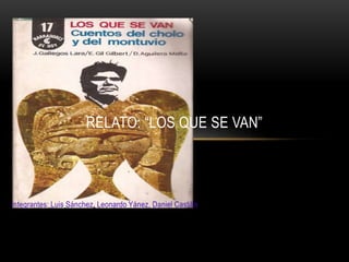 Este documento resume la obra literaria "Los que se van" escrita en 1930 por los escritores ecuatorianos Demetrio Aguilera Malta, Joaquín Gallegos Lara y Enrique Gil Gilbert, quienes pertenecieron al grupo literario conocido como Grupo de Guayaquil. La obra es una recopilación de 34 cuentos breves que narran la vida de campesinos costeños ecuatorianos y su relación con la pobreza y el entorno rural.