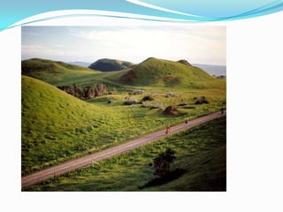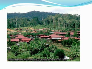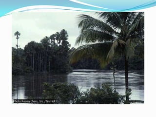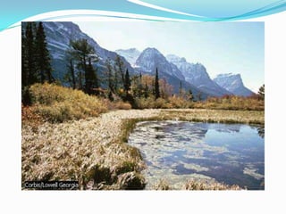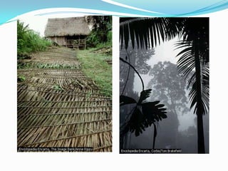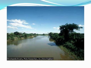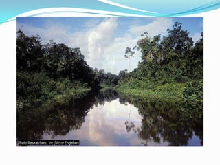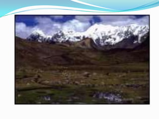 El documento describe las principales regiones fisiográficas de América del Norte, Central y del Sur. Incluye escudos, cordilleras, llanuras y selvas que se caracterizan por su ubicación, relieve, clima, vegetación, recursos naturales y actividades económicas desarrolladas.