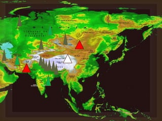 Este documento asigna diferentes lugares de relieve en Asia a estudiantes para que realicen una exposición sobre ellos. Cada estudiante debe incluir 5 imágenes, la vegetación y animales típicos, y ubicar el lugar en un mapa de Asia. Los lugares asignados incluyen la llanura de Siberia, la meseta del Tibet, el desierto de Gobi, y varias cordilleras de montañas como el Himalaya y los Montes Hindú Kush.