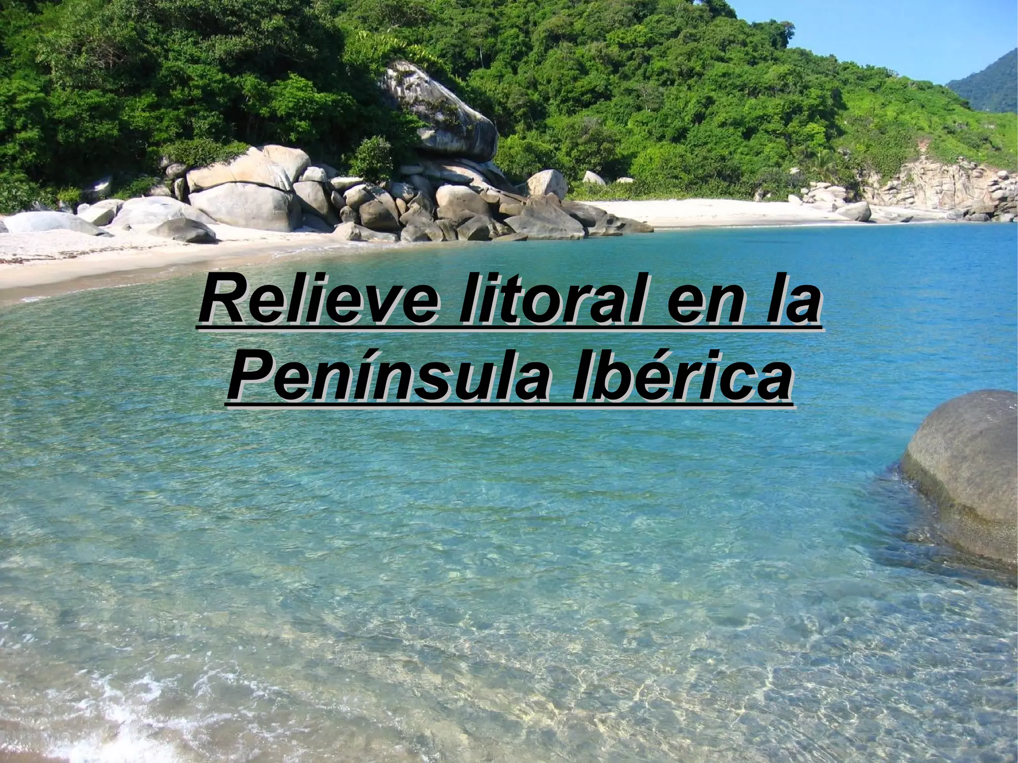El documento describe el relieve litoral de la península ibérica y las islas adyacentes. Se divide en costas atlánticas, mediterráneas e insulares. Las costas atlánticas incluyen las costas cantábricas rectilíneas, las recortadas rías gallegas y las amplias playas de Andalucía. Las costas mediterráneas presentan acantilados, golfos y playas en el sector bético, albuferas y tómbolos en el golfo de Valencia, y calas y deltas