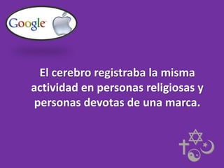 El documento compara la religión y las marcas, identificando diez pilares comunes que generan conexión y lealtad, como el sentido de pertenencia y la simbología. Se discute cómo ambas, religiones y marcas, utilizan rituales, historias y senso atractivo para cultivar relaciones emocionales con sus seguidores. Además, se destaca la importancia del misterio y la exclusividad en la fidelización de consumidores y creyentes.