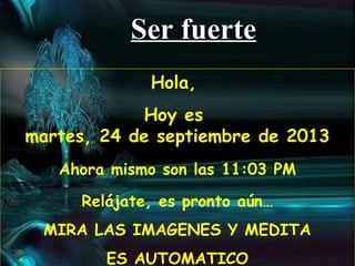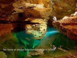 El documento habla sobre la fortaleza. Define la fortaleza como irradiar felicidad cuando uno es infeliz, perdonar a alguien que no lo merece, y amar en silencio. También menciona que es fuerte mantener la calma en momentos de desesperación, sonreír cuando se quiere llorar, y hacer feliz a otros cuando uno tiene el corazón roto. Concluye diciendo que a pesar de las dificultades de la vida, hay que amar y ser fuerte.