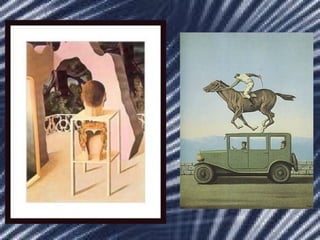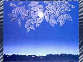 René Magritte fue un pintor surrealista belga conocido por sus obras conceptuales que yuxtaponían objetos cotidianos en contextos inusuales para cuestionar la relación entre las imágenes y su significado. Sus pinturas buscaban provocar contradicciones intelectuales en el espectador y frecuentemente titulaba sus obras de manera surrealista para no corresponderse con su contenido visual, cuestionando así la naturaleza de la representación. Magritte creía que el arte debía evocar el misterio inherente al universo y
