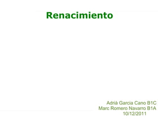 El documento resume las principales características del Renacimiento en Europa, incluyendo descubrimientos científicos como que la Tierra gira alrededor del Sol, el desarrollo de las ciudades y la burguesía, el ascenso de la literatura y las artes gracias a la imprenta, y el papel más activo de las mujeres en la sociedad, especialmente Isabel la Católica. También analiza géneros literarios como la poesía, el teatro y la novela, así como la música religiosa de la época.