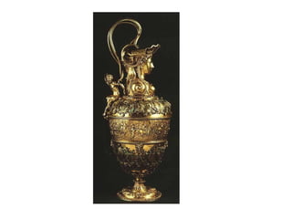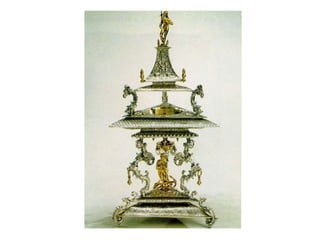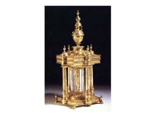 El Renacimiento surgió en Italia entre los siglos XIV y XVI, caracterizado por la admiración por la antigüedad clásica griega y romana. Se desarrollaron las universidades y las ciencias y las artes florecieron, con inventos como la imprenta. Los artistas comenzaron a firmar sus obras y a elegir sus temas, surgieron el mecenazgo y el coleccionismo privado. En arquitectura destacan cúpulas como la de Santa María de Florencia y edificios renacentistas y platerescos. En escultura