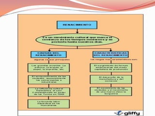 El Renacimiento fue un movimiento cultural que se produjo en Europa durante los siglos XV y XVI, caracterizado por la difusión de las ideas humanistas que determinaron una nueva concepción del hombre y el mundo con un enfoque antropocéntrico, y el desarrollo esplendoroso de las artes, las ciencias como la medicina, y los orígenes de la imprenta y la Reforma protestante liderada por Martín Lutero.