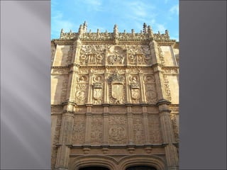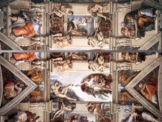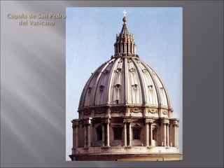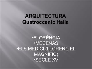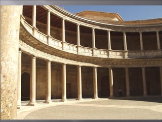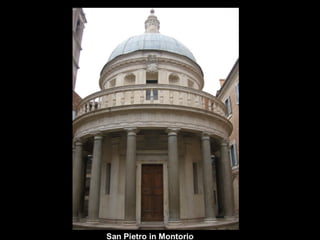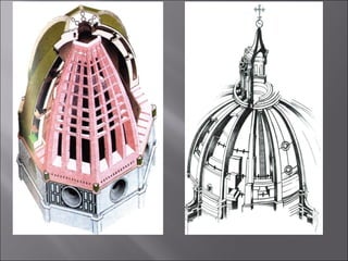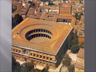 El documento resume la arquitectura y el arte del Renacimiento en Italia y España entre los siglos XV y XVI. En Italia, destacan figuras como Brunelleschi, Leon Battista Alberti, Miguel Ángel, Rafael y Leonardo da Vinci. En España, el estilo plateresco y el estilo herreriano marcaron la arquitectura renacentista, mientras que El Greco fue un importante pintor del periodo.