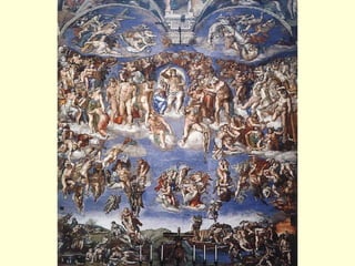 El documento resume las principales obras del Renacimiento italiano y europeo, incluyendo arquitectura como la cúpula y basílica de Brunelleschi en Florencia, escultura como El David y Moisés de Miguel Ángel, y pinturas como La Escuela de Atenas de Rafael, La Capilla Sixtina y El Juicio Final de Miguel Ángel, La Gioconda de Leonardo da Vinci y obras de Tiziano, Tintoretto, El Greco y otros artistas renacentistas.