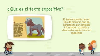 El documento describe el texto expositivo y los afiches publicitarios. El texto expositivo tiene como objetivo informar sobre un tema de manera clara y explícita usando tercera persona y vocabulario simple. Los afiches se diseñan para dar a conocer un mensaje y difundir información, existiendo dos tipos: los propagandísticos, que buscan persuadir sobre un tema; y los publicitarios, cuyo fin es convencer sobre un producto o servicio.