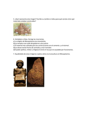 Mesopotamia se refiere a la región entre los ríos Tigris y Éufrates en el Oriente Medio antiguo, donde surgió una de las primeras civilizaciones. La agricultura floreció gracias al ciclo anual de crecidas de los ríos, y la sociedad se dividía en grupos como los sacerdotes, comerciantes y campesinos. La escritura cuneiforme fue desarrollada sobre el 3000 a.C. para registrar transacciones comerciales, y se escribía sobre tablillas de arcilla con un