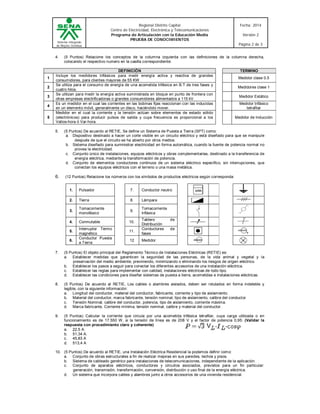 Este documento presenta una prueba de conocimientos sobre instalaciones eléctricas dirigida a aprendices. Contiene 15 preguntas de selección múltiple sobre temas como símbolos eléctricos, conceptos básicos, normativa RETIE, cálculos de corriente y esquemas de conexión. Se instruye a los aprendices a responder honestamente y de forma responsable.