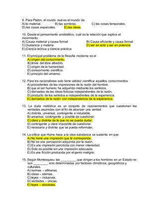 3. El documento parece ser un examen o cuestionario sobre historia de la filosofía.