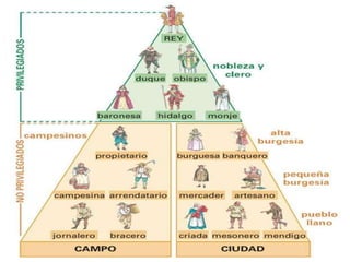 El documento presenta un resumen de contenidos del primer semestre que incluye una comparación entre la sociedad medieval y moderna, así como aspectos políticos, económicos, culturales y científicos de la Edad Media y la Edad Moderna. Un tema central es el absolutismo monárquico como régimen político de transición entre la Edad Media y la Edad Moderna en Europa Occidental, caracterizado por la concentración de todo el poder en manos de un monarca.
