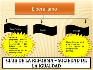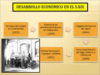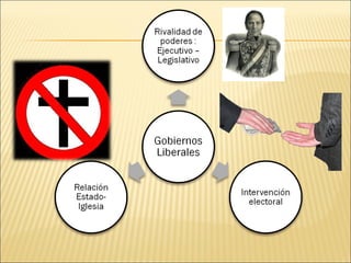 El documento analiza la influencia del liberalismo en Chile en la segunda mitad del siglo XIX. Explica que a mediados de siglo hubo una lucha entre los defensores del estilo autoritario y quienes favorecían un enfoque más liberal y tolerante. Finalmente, el impulso liberal resultó irresistible. Se produjo una serie de reformas constitucionales que apuntaban a liberalizar el país, incluyendo la reducción del poder de la Iglesia Católica y el desarrollo de una mayor libertad política y económica. También se com