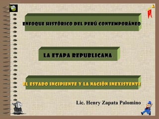 La etapa republicana del Perú se caracteriza por inestabilidad política, económica y social, con frecuentes golpes de estado y cambios constitucionales, así como una destrucción del capital colonial. Durante este período, el país dependió económicamente del capitalismo inglés y enfrentó un racismo persistente hacia las poblaciones indígenas y afrodescendientes. Además, la demarcación territorial y la libre determinación de los pueblos marcaron la pérdida y adquisición de territorios tras los movimientos revolucionarios.