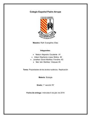 Este documento describe el proceso de replicación del ADN. Explica que la replicación sigue un mecanismo semiconservador donde cada molécula hija contiene una cadena del ADN original y otra nueva. Detalla las fases e involucra a enzimas como la ADN polimerasa, helicasa y ligasa. Finalmente, concluye que la replicación garantiza la transmisión fiel de la información genética entre generaciones a través de un proceso semiconservador demostrado por Meselson y Stahl.