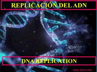 La replicación del ADN es un proceso semiconservativo donde cada hebra vieja actúa como molde para formar una nueva hebra, resultando en dos moléculas idénticas. Este proceso comienza en un origen de replicación, donde la enzima helicasa separa las hebras y la ADN polimerasa sintetiza las nuevas hebras mediante un mecanismo de plantilla. La replicación implica además la formación de fragmentos de Okazaki en la hebra retrasada y la acción de la telomerasa para extender telómeros en células germinativas.