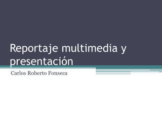 Este documento describe las características del reportaje multimedia y su presentación en formato digital. Explica que el reportaje multimedia permite combinar texto, imágenes, sonido y aplicaciones, rompiendo la secuencialidad tradicional y permitiendo la interactividad y actualización continua. Además, divide el reportaje en varios niveles como la página principal, extensión del texto principal, contextualización primaria y secundaria, y enlaces externos. Finalmente, describe diferentes tipologías de reportajes como de actualidad, temáticos y documentales.