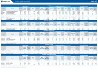 El documento resume el desempeño de los mercados bursátiles y económicos del día 15 de mayo de 2017. Los principales índices europeos y estadounidenses registraron pequeñas alzas impulsados por el aumento en los precios del petróleo, mientras que las bolsas asiáticas presentaron resultados mixtos. En el Perú, la bolsa de valores cerró con ganancias lideradas por el sector financiero y el tipo de cambio se apreció.