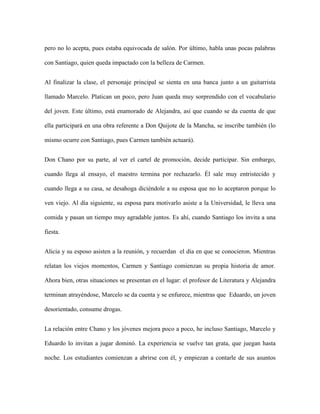 La película cuenta la historia de Juan Arturez, un hombre de 70 años que ingresa a la universidad para estudiar literatura hispanoamericana. Aunque sus compañeros son mucho más jóvenes, establece una amistad con ellos y les enseña sobre la literatura y la vida. Juan ayuda a los estudiantes cuando enfrentan problemas personales y dificultades en la obra de teatro que preparan. Desafortunadamente, la esposa de Juan fallece repentinamente, lo que lo deja devastado, pero regresa a la universidad gracias al apoyo de sus amigos