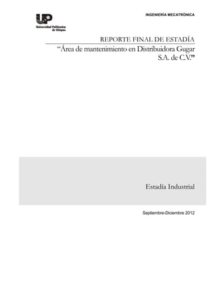 El documento resume la estadía del autor en el área de mantenimiento de una empresa embotelladora. Realizó diversas actividades de mantenimiento preventivo y correctivo en las máquinas de producción. Aprendió sobre el funcionamiento de los equipos y sistemas eléctricos e industriales. La estadía le permitió aplicar sus conocimientos de ingeniería y desarrollar nuevas habilidades técnicas.