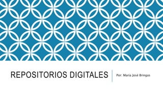 Este documento describe los repositorios digitales y varios ejemplos como Flickr, Mega, SlideShare y Scribd. Los repositorios digitales son recursos en línea que almacenan y mantienen información digital como fotografías, archivos y presentaciones que han sido previamente aceptados. Cada ejemplo se describe con sus características principales, ventajas y desventajas.