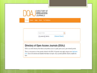 Los repositorios son sitios web de acceso abierto que almacenan y preservan la producción intelectual de una disciplina o institución. Existen diferentes tipos de repositorios como institucionales, temáticos, agregadores y de datos científicos. Los repositorios permiten almacenar, modificar y registrar el historial de cambios de los elementos almacenados.