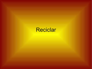 Este documento describe el proceso de reciclaje y las razones para reciclar. Explica que el reciclaje permite reutilizar productos de desecho y ahorrar recursos naturales como el petróleo y la energía. También detalla los principales materiales que se pueden reciclar, como el papel, plástico, vidrio, metal y residuos electrónicos y orgánicos.