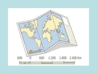 La cartografía es una disciplina esencial de la geografía que se encarga de la elaboración de mapas, planos y cartas que representan de manera fiel el espacio geográfico. Estos mapas incluyen elementos importantes como el título, la rosa de los vientos y la leyenda, así como escalas que indican la relación proporcional entre el tamaño real y su representación. Existen diferentes tipos de escalas: numérica, gráfica y cromática, que permiten visualizar distancias y altitudes en el relieve.