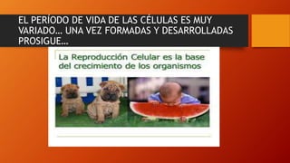 Este documento describe los procesos de reproducción celular de mitosis y meiosis. La mitosis produce dos células hijas idénticas a partir de una célula madre somática y mantiene la información genética, mientras que la meiosis reduce el número de cromosomas en las células sexuales produciendo cuatro células haploides a partir de una célula diploide. Se explican las fases de cada proceso y las diferencias clave entre ellos, como el número de células resultantes, el contenido cromosómico y el momento en que ocurren.
