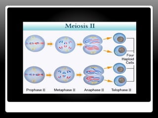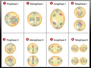 El documento aborda la reproducción y división celular, describiendo los procesos de reproducción asexual, como bipartición, gemación y esporulación, así como la reproducción sexual que involucra la fusión de gametos. Se detallan las fases de la mitosis y meiosis, explicando cómo se generan células hijas y gametos con diferente número de cromosomas. Además, se menciona la importancia de estos procesos para la conservación de las especies vivas.