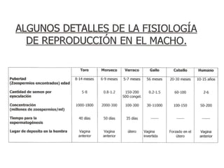 Este documento describe la anatomía fisiológica de la reproducción en animales de producción. Cubre la anatomía del aparato reproductor en hembras y machos, incluyendo ovarios, útero, vagina, testículos y conductos deferentes. También explica el ciclo estral, la espermatogénesis, la fecundación, la gestación y el parto. El objetivo es proporcionar una descripción básica de estos sistemas y procesos reproductivos en diferentes especies de interés agropecuario.