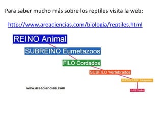Los reptiles son vertebrados de sangre fría con escamas y respiración pulmonar, que dependen de su entorno para regular su temperatura corporal. Se dividen en categorías como serpientes, tortugas y cocodrilos, y la mayoría son ovíparos, originándose de huevos. Existen aproximadamente 8,240 especies de reptiles repartidas por todos los continentes, excepto la Antártida.