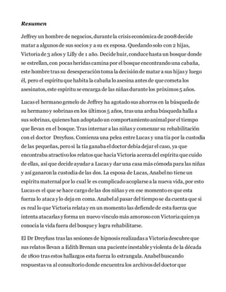 La película Mama cuenta la historia de dos niñas, Victoria y Lilly, que son cuidadas por un espíritu después de que su padre intenta asesinarlas. Cinco años más tarde, son encontradas por su tío Lucas y su novia Annabel. Annabel comienza a defender a las niñas de ataques del espíritu mientras intentan rehabilitarlas. La investigación revela que el espíritu es el de una paciente psiquiátrica del siglo XIX llamada Edith Brenan. En un enfrentamiento final, Annabel y Lucas luchan