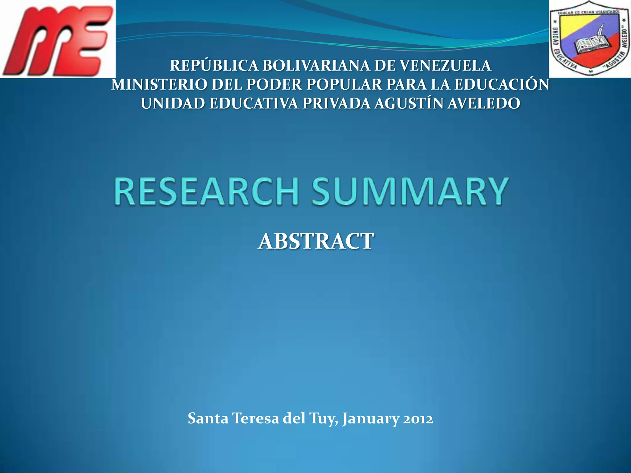 El documento proporciona información sobre cómo escribir resúmenes. Explica que los resúmenes deben tener entre 200 y 250 palabras, usar un interlineado de 1 punto, y estar escritos en tipos de letra como Times New Roman o Arial. Además, indica que existen dos tipos de resúmenes, descriptivos e informativos, y enumera las partes que debe contener un resumen como introducción, planteamiento del problema, procedimientos y resultados. Por último, menciona cosas que se deben evitar al escribir un resumen, como el uso de
