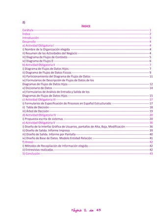 El documento presenta información sobre un centro de kinesiología llamado "El Solar" que brinda tratamiento para el dolor. Se describen 7 actividades principales del negocio relacionadas con la atención de pacientes, incluyendo la solicitud y reserva de turnos, elaboración de fichas médicas, atención de pacientes y actualización de datos.