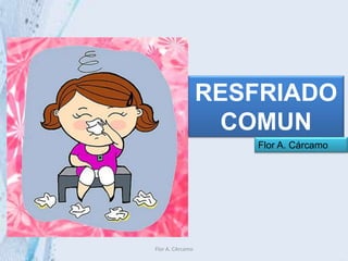 El resfriado común es una enfermedad viral leve del sistema respiratorio superior que afecta a personas de todas las edades. Los síntomas incluyen tos, congestión nasal, malestar general y fiebre baja. La mayoría de los resfriados son causados por rinovirus y se propagan a través de gotículas respiratorias. Generalmente se autolimitan en una semana a diez días sin tratamiento, aunque pueden complicarse en casos raros. El tratamiento incluye analgésicos, antihistamínicos y expectorantes para aliviar los