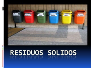 El documento habla sobre los residuos sólidos y la importancia del reciclaje. Explica que el reciclaje es un proceso cíclico que convierte los desechos en materia prima para nuevos productos, ayudando a reducir los efectos del cambio climático. También describe los diferentes tipos de residuos sólidos como químicos, infecciosos, plásticos, de papel y biodegradables, e indica que el reciclaje beneficia tanto al medio ambiente como económicamente.