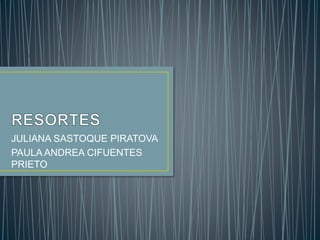 Este documento describe los diferentes tipos de resortes, incluyendo resortes de compresión, extensión y torsión. Explica que los resortes se fabrican con materiales como acero al carbono y aleaciones de cobre o níquel. Se clasifican según su forma, sección transversal y tipo de carga soportada. Los resortes de compresión son los más comunes y almacenan energía al disminuir su volumen bajo presión.