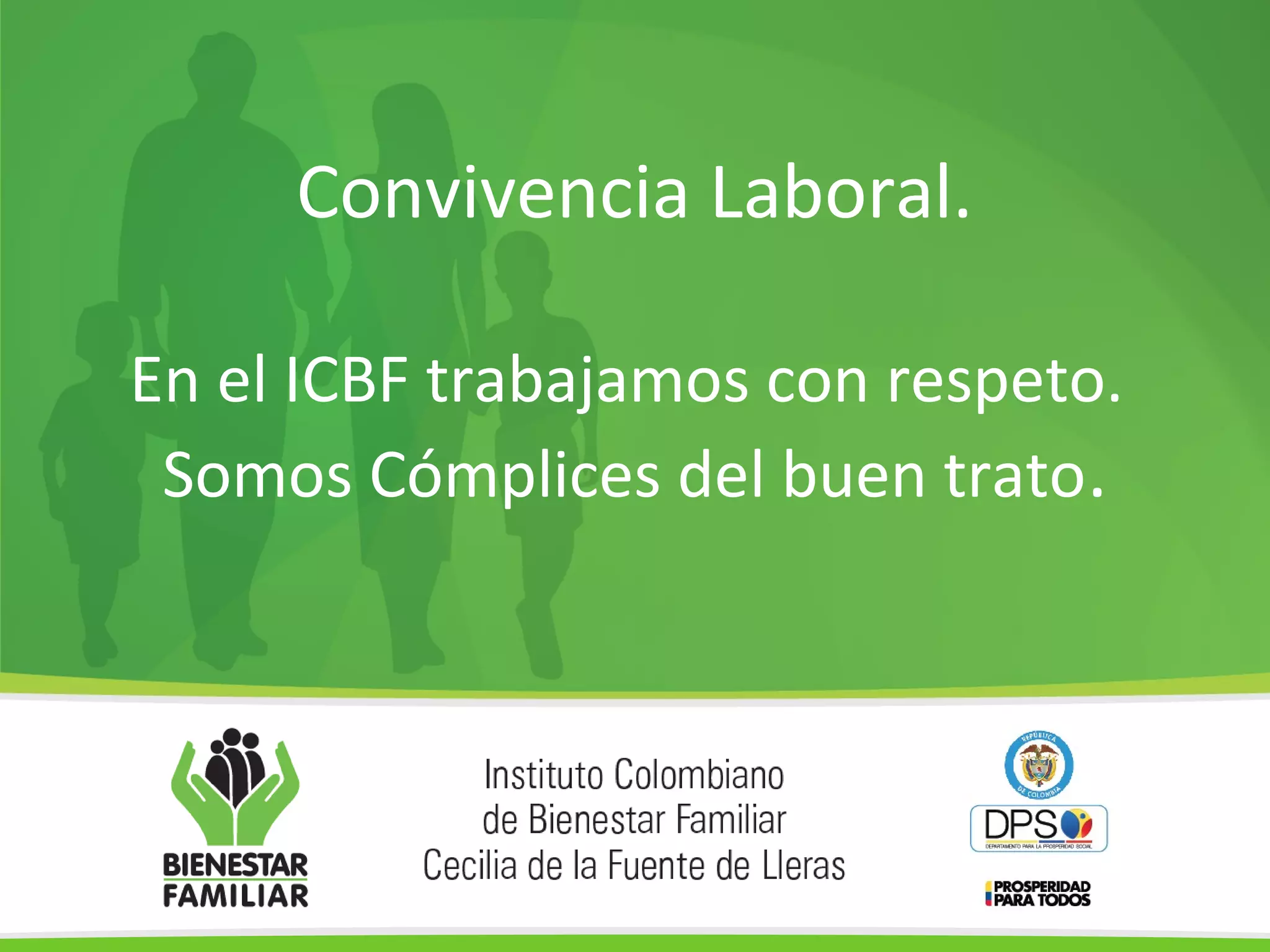 El documento habla sobre la importancia del respeto en el lugar de trabajo. Explica que en el ICBF trabajan con respeto y son cómplices del buen trato. Resalta que el respeto es la base para el entendimiento entre las personas y que al practicar el respeto hacia uno mismo y los demás, se vuelve más tolerante, comprensivo y responsable.