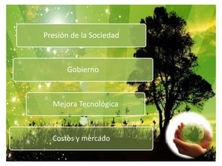 Este documento define la gestión ambiental como el conjunto de esfuerzos para lograr un equilibrio entre el desarrollo económico, el crecimiento de la población, el uso racional de los recursos y la protección del medio ambiente. También se define como equilibrar la demanda de recursos naturales con la capacidad del ambiente de satisfacer dicha demanda de manera sostenible. Explica que la evolución de la gestión ambiental corresponde a diferentes formas de entender la relación entre el hombre y la naturaleza, incluyendo la economía