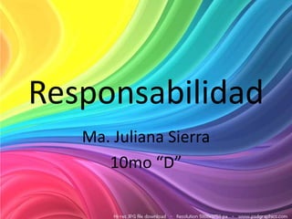 Este documento define la responsabilidad como la capacidad de asumir las consecuencias de nuestras propias decisiones y cumplir con nuestros deberes. Explica que la responsabilidad surge de nuestra libre voluntad y que las personas responsables cumplen con sus obligaciones y tareas. También destaca la importancia de la responsabilidad para mantener el orden social y la confianza entre las personas.