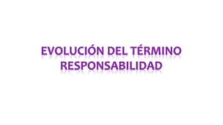 Este documento define la responsabilidad y discute su importancia en diferentes contextos. Explica que la responsabilidad implica asumir las consecuencias de las propias acciones y decisiones. También requiere libertad y estar sujeto a leyes o normas. Luego analiza cómo se entiende la responsabilidad en ámbitos como el familiar, laboral y moral. Por último, resalta que en la sociedad moderna es importante que todos seamos conscientes de los problemas globales y participemos de manera activa y responsable en resolverlos.