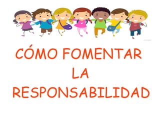 El documento discute cómo fomentar la responsabilidad en los niños. Explica que la responsabilidad implica asumir obligaciones propias de cada edad y hacerse cargo de las consecuencias de las propias acciones. Señala que la responsabilidad se puede comenzar a enseñar desde los 3 años a través de tareas pequeñas y elogios por el cumplimiento, y que los padres deben poner el ejemplo y dejar que los niños aprendan de sus propios errores. El desarrollo de la responsabilidad es fundamental para la aut