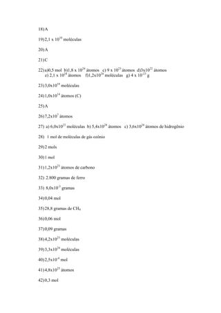 22) a)0,5 mol b)1,8 x 1024 átomos c) 9 x 1023 átomos d)3x1022 átomos
