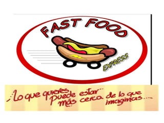 El documento presenta el menú de un restaurante de comida rápida, incluyendo diferentes tipos de perros calientes, empanadas y bebidas, así como granizados. El restaurante se encuentra en la Cra. 3w #14-146 y sus números de contacto son 6561837 y 3158188374, con un correo electrónico de fastfood@hotmail.com.